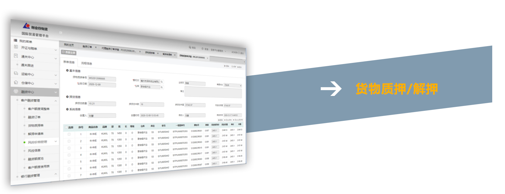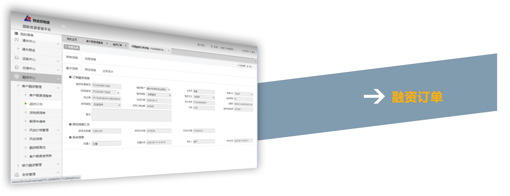 基于利仓行物流二十余年专业采购、融资经验,携手银行、保理、信贷和基金把资金引入实体产业,为企业国际采购与结算、存货、产品销售等环境提供采购融资、库存质押、订单融资等一系列的供应链金融解决方案。以全程供应链为载体,通过质押监管平台为金融机构开放全流程业务场景,全面实现商流、物流、资金流和信息流为一体的闭环运作,为企业拓展融资渠道,盘活企业资产提供强大金融支撑。